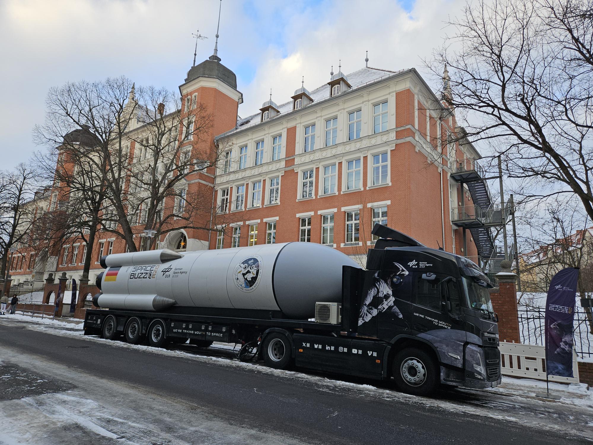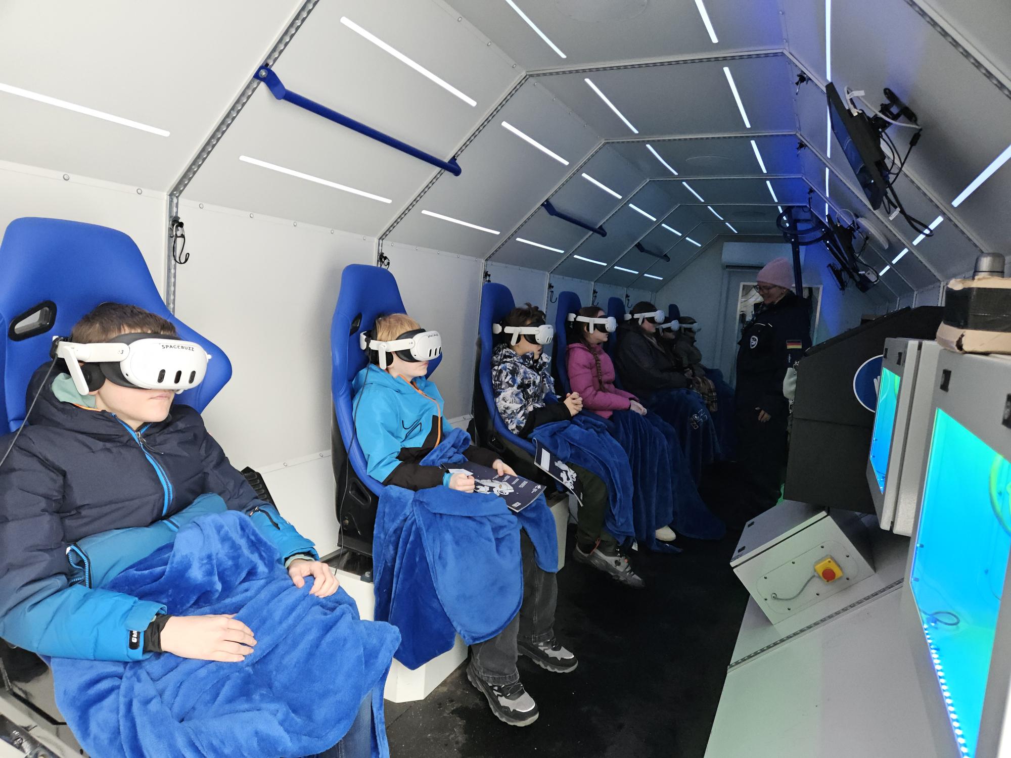 Ein besonderes Highlight erwartete unsere 6. Klassen am ersten Schultag nach den Weihnachtsferien: der Besuch des Spacebuzz One, der Deutschen Raumfahrtagentur DLR, ein begehbarer High-Tech-LKW, der äußerlich einer liegenden Rakete ähnelt! In dem innovativen Lernprojekt konnten die Schülerinnen und Schüler mithilfe modernster Virtual-Reality-Technik eine Reise ins All unternehmen. Aus der Perspektive von Astronautinnen und Astronauten, erlebten sie für 15 Minuten, begleitet durch die Astronauten Alexander Gerst und Matthias Maurer unseren Planeten Erde von oben und lernten eindrucksvoll, wie schützenswert unsere Umwelt ist. Bevor wir wieder auf der Erde gelandet sind, ging es noch eine Runde um den Mond. Wir haben uns auch sehr gefreut, dass der Oberbürgermeister von Görlitz Herr Octavian Ursu unserer Einladung gefolgt ist, um das Erlebnis mit unseren Schülerinnen und Schülern zu teilen. Der Besuch des Spacebuzz One war für alle ein unvergessliches Erlebnis, das Begeisterung für Wissenschaft, Raumfahrt und Nachhaltigkeit geweckt hat.